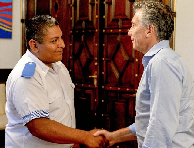 «Quedate tranquilo porque hiciste lo que hay que hacer y te vamos a ayudar a resolver tu situación» dijo el Presidente de la Nación mientras recibía, abrazaba y felicitaba a un Policía de la bonaerense que está procesado por haber asesinado por la espalda a un delincuente que escapaba desarmado. Si, si. La Justicia lo procesó a Luis Chocobar porque entendió que actuó con excesiva violencia y disparó tres veces por la espalda, hasta acabar con la vida de un maleante que huía de la escena donde había intentado robar y posiblemente matar a un turista.