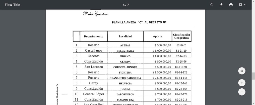 Los dos decretos, que no fueron publicados en el Boletín Oficial de la provincia, firmados el 16 y el 30 de diciembre pasado, destinan, sobre un total de 93 millones recibidos a través de Aportes del Tesoro Nacional, $51.650.000 a distintas comunas y municipios; reservándose los restantes $ 41.250.000 para una distribución posterior, quedando esa remesa en las arcas de la provincia.