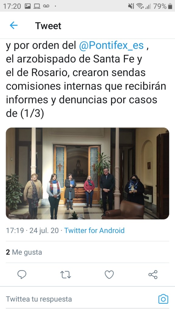 La Directora de Mujeres y Disidencias de la Municipalidad de Santa Fe, Soledad Artigas, tampoco dejó lugar a dudas : «Vemos con preocupación la metodologia que está proponiendo el Arzobispado. Sólo la Justicia puede recepcionar este tipo de denuncias. Es el único organismo que puede accionar en relación a este tipo de denuncias. Nosotros como Municipio no recibimos denuncias. Escuchamos, asesoramos a las víctimas y les indicamos cuales son las herramientas para que inicien la acción penal» y agregó: «no se puede hablar y denunciar ante la misma institución que está ejerciendo la situación de vulneración de derechos«