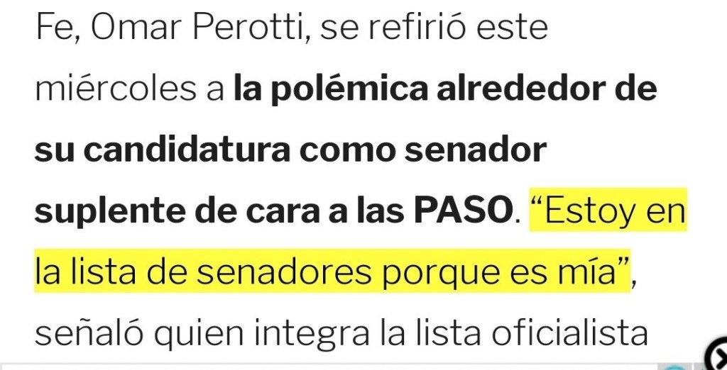 En la ausencia del liderazgo indiscutido de Lifschitz, es Agustín Rossi el que salió a cruzar a Perotti, para detener su proceso de apropiación del Estado. Un proceso que ni siquiera disimula, proponiéndose como suplente de la lista de senadores, procurando fueros y definiendo a la lista que encabeza el senador bielsista ( de Maria Eugenia, no de Marcelo) Marcelo Lewandowski como «mía».