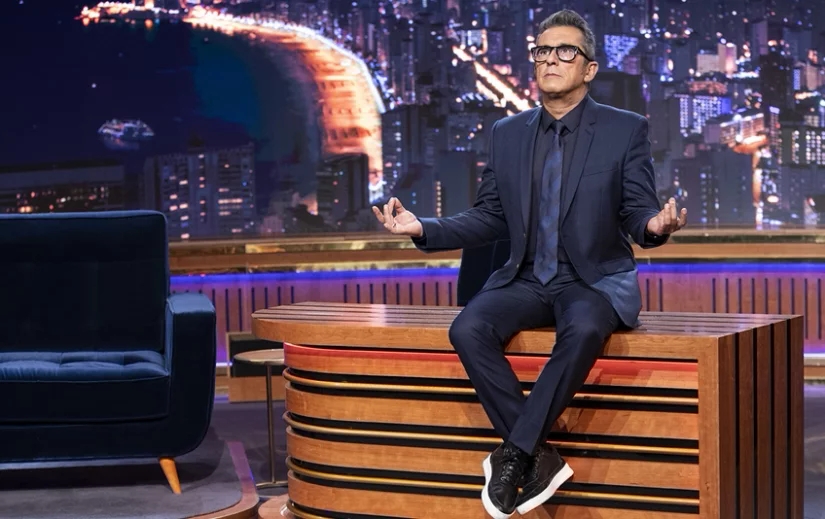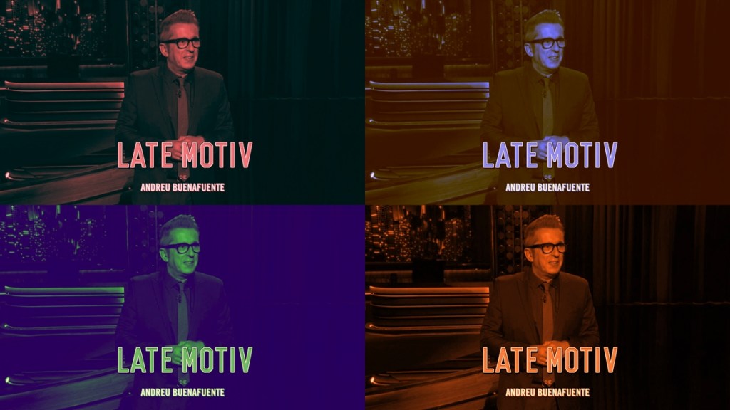 A la izquierda, un escritorio, un sillón cómodo. Una gigantografía de la noche en ¿Marbella? Da igual. Es la noche de cualquier ciudad bonita mirando al mar. Las luces de una ciudad despierta, mirando la tele. Y las letas de neón que consagran la invención idiomática: LATE MOTIV. Y nada más.