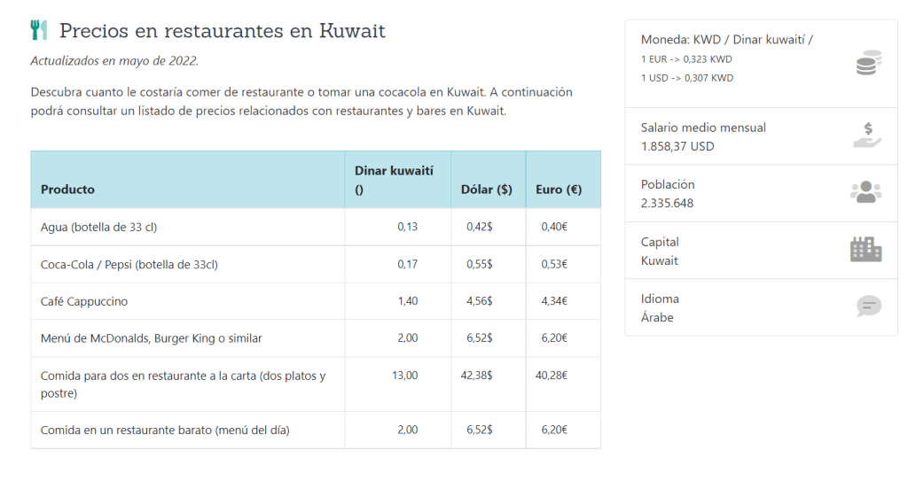 ¿CUANTO SE NECESITA PARA COMER EN KUWAIT Y DUBAI?