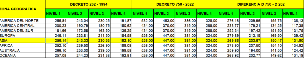 Señalados con amarillo, son los montos concretos que se percibirán, tratándose de una Misión en Asia.