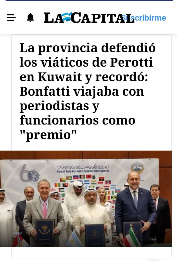 A Corach le salió «reivindicar» el solitario viaje del gobernador, en el nombre de la presunta austeridad del mandatario. Se olvidó que el viaje duró 14 días, que lo solventó – pasajes y hoteles- el CFI y en los que «El gigante», tuvo para sus gastos personales, junto al ministro Walter Agosto, 526 dólares diarios. Unos 110 mil pesos diarios. En esos 14 días, tuvo sólo dos actividades reportadas como oficiales: Una en Francia (paradójicamente sobre seguridad pública, justo cuando había abandonado a su provincia sin nombrar al secretario del área, tras el doble bochorno Bortolozzi- Bernhardt) y otra en Kuwait, firmando un convenio junto a la Provincia de Córdoba y su gobernador, Juan Schiaretti. El bueno de Juan, un poco más responsable, utilizó sólo una semana de su agenda para firmar el convenio, a diferencia del santafesino que se ausentó dos.
