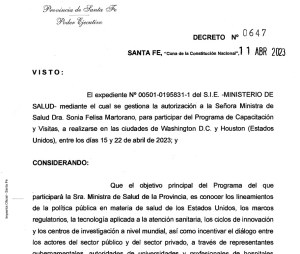 Pero no sòlo la ministra no explica eso, ni se refiera a el alerta que recibió desde Villa Guillermina, en el norteño departamento General Obligado, durante los meses de enero y febrero, donde hubo un contagio generalizado sin que contaran con la atenciòn ni las medidas desde el estado provincial. No, además la ministra decide embarcarse en pleno pico de la pandemia, en un viaje de una semana – costeado con los recursos del estado-obviamente- a los Estado Unidos. A Washngton y a Houston, desde el 15 al 23 de abril inclusive, con el argumento de ir a participar de un «Programa de Capacitaciòn y Visitas», que nunca explica los beneficios que le traerá a las funciones que terminará de cumplir el próximo 10 de diciembre.