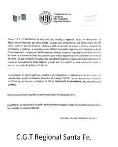 Recibimos con orgullo, el reconocimiento público de la CGT Santa Fe.