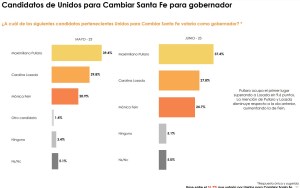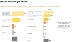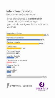 Dentro de la coalición opositora, Pullaro mantiene la ventaja sobre Losada. Pero con el correr de los meses, la socialista Mónica Feín va ampliando su caudal, aunque se mantiene lejos de pelear por el primer lugar. Del otro lado, la cosa parece mucho más estática: Marcelo Lewandosky encabeza las preferencias dentro del peronismo, con una distancia larga sobre Busatto, Cleri y Toniolli, que disputarán el voto Kirchnerista puro.
