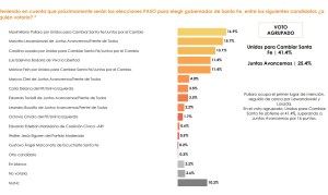 Según este estudio, el radical Maximiliano Pullaro sería el candidato más votado con 20,4% de los votos, seguido por Marcelo Lewandosky con 18,1%, luego Carolina Losada con 17,5 % y en cuatro lugar, la socialista Monica Fein con un 7,8%.
