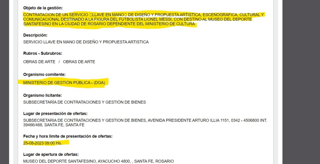 En estas horas el propio Messi donó por unos días, un botín y una pelota de oro, para que sea exhibido en el mismo museo del Deporte, sin ninguna carga económica. ¿ por qué entonces el Estado, a través de un gobierno que se está yendo, lanza una licitación para comprar por 260 millones, en modalidad «llave en mano», una «obra» sin definiciones concretas de características, a la que llaman «Experiencia Messi»?
