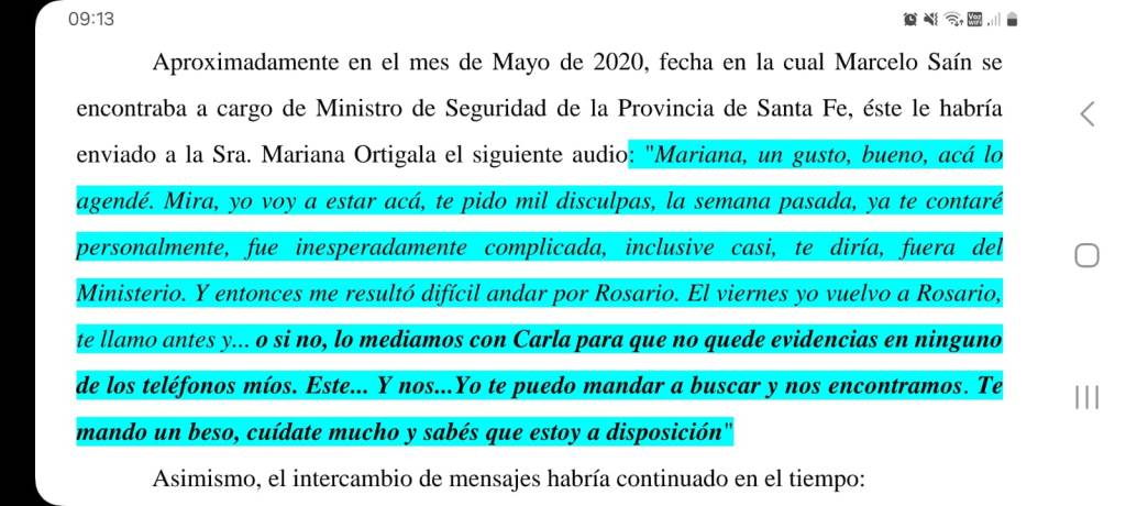 Si. En mayo de 2020, mientras ocupaba el centro del poder de la seguridad de la provincia de Santa Fe, Marcelo Saín se mensajeaba con Marina Ortigala, y le proponía un «encuentro».